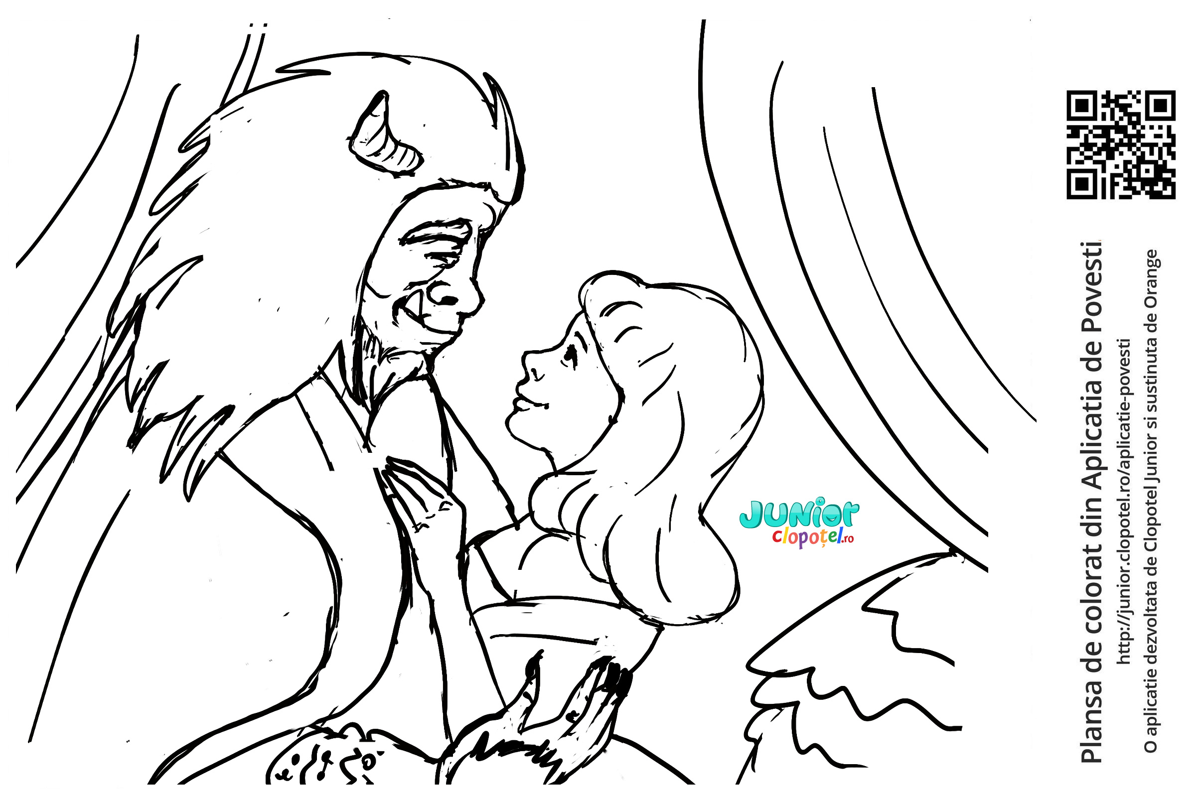 Descriere: Plansa de colorat cu bestia scapata de blestem. Scena din "Frumoasa si bestia".