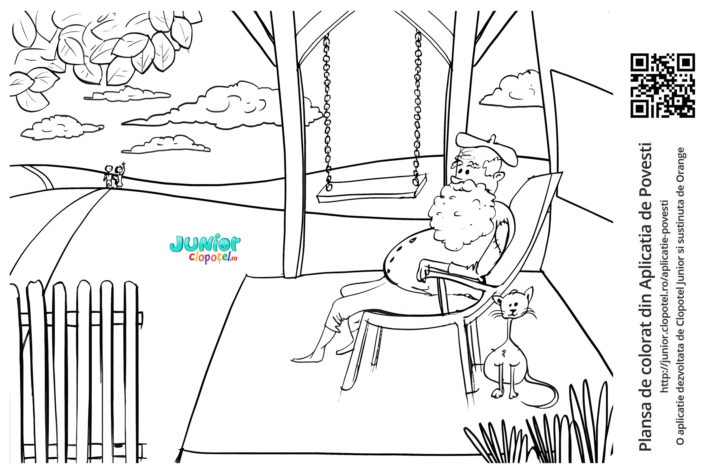 Descriere: Plansa de colorat cu bunicul din aplicatia POVESTI. Daca vrei sa descoperi mai multe basme, descarca-ti aplicatia din Google Play sau App Store.