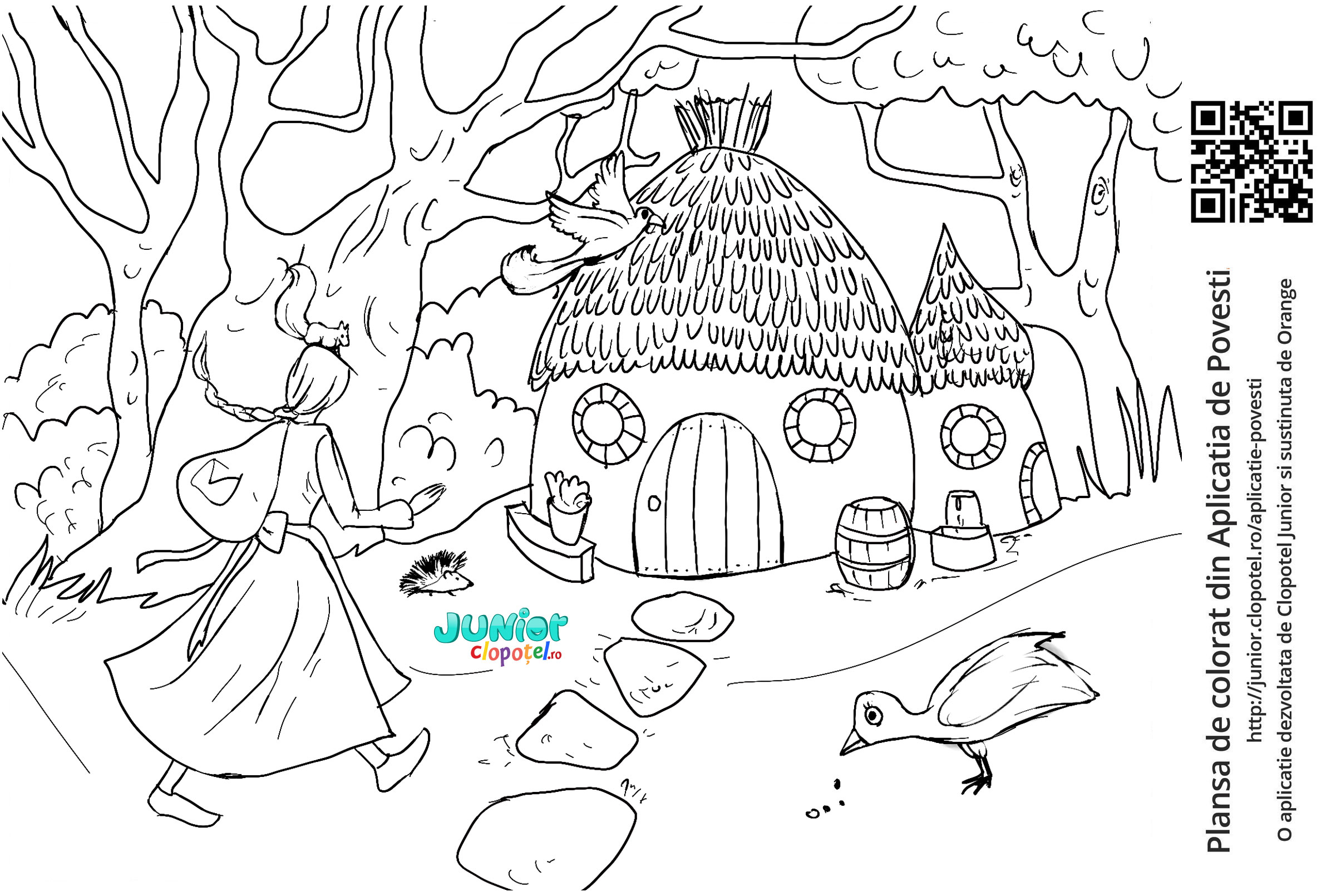 Descriere: Plansa de colorat cu casuta din padure Scena din aplicatia POVESTI. Daca vrei sa descoperi mai multe basme, descarca-ti aplicatia din Google Play sau App Store.