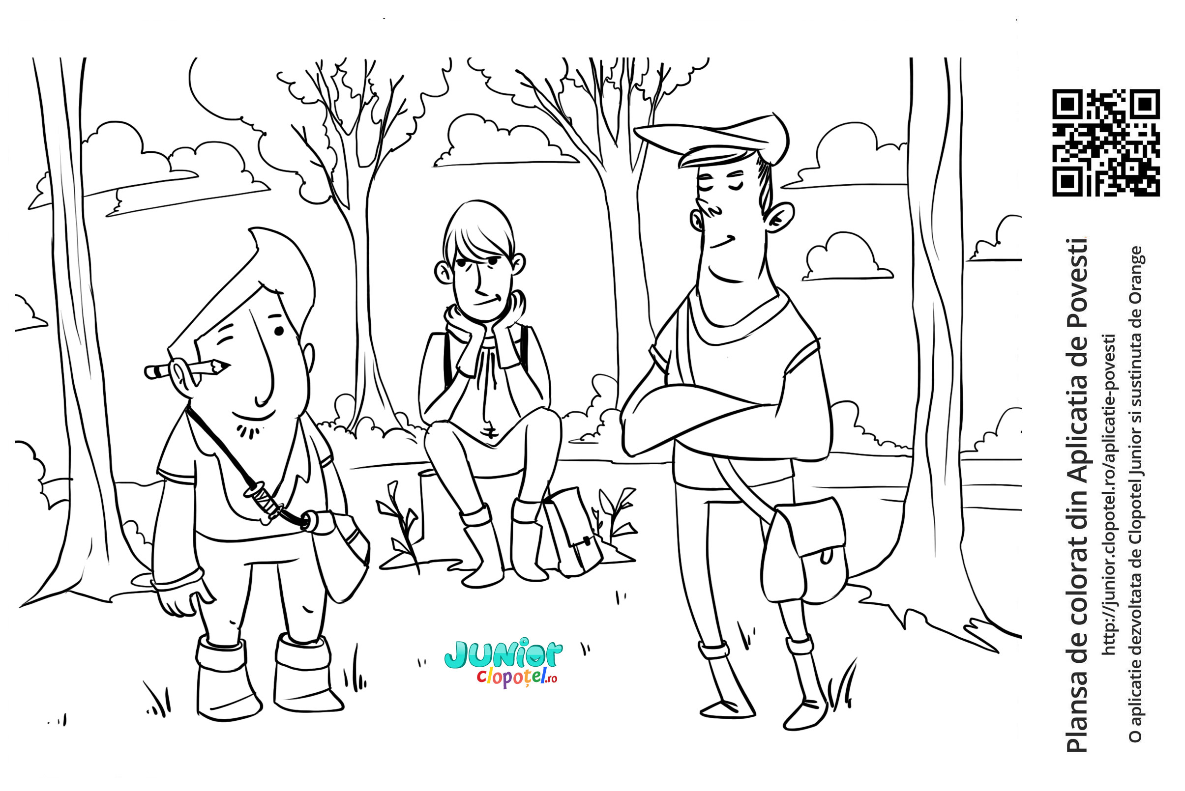 Descriere: Plansa de colorat cu cei trei croitorasi. Scena din povestea "Croitorasul cel istet" din aplicatia POVESTI. Daca vrei sa descoperi mai multe basme sau legende, descarca-ti aplicatia din Google Play sau App Store.