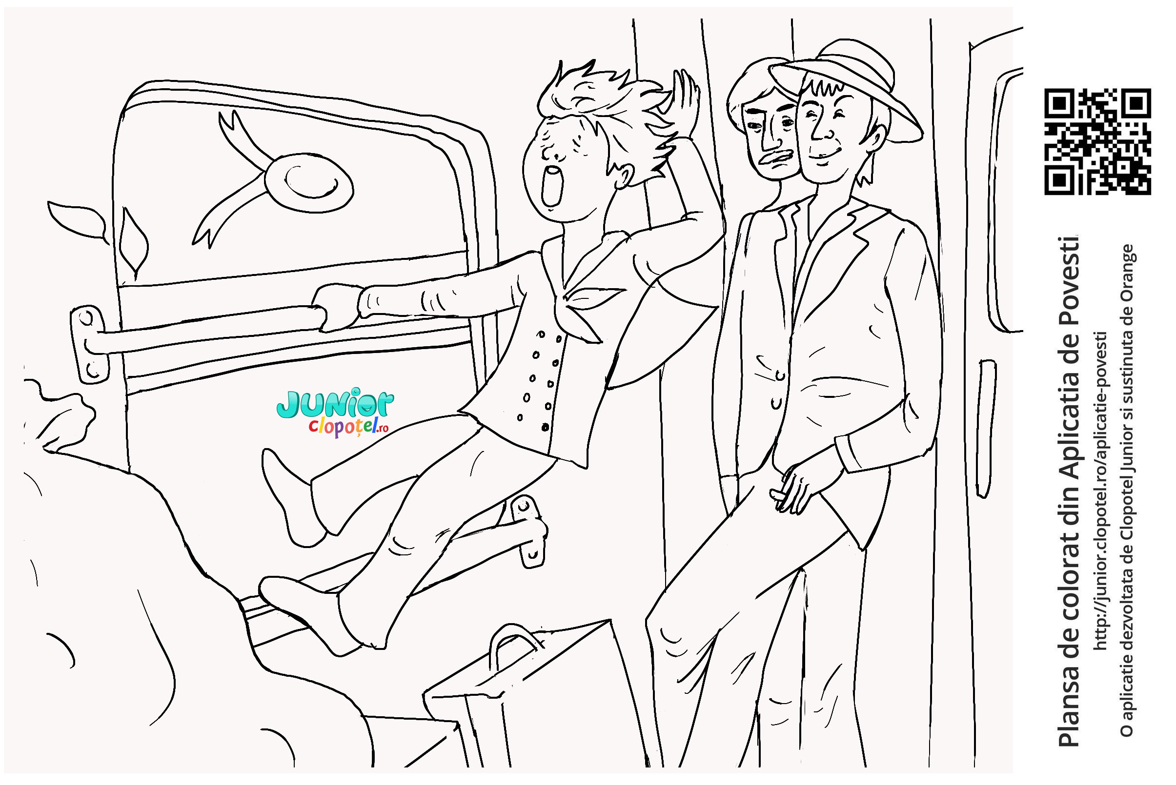Descriere: Plansa de colorat cu D-l Goe care ramane fara palarie. Scena din povestea "D-l Goe...". Citeste sau asculta povestea.
