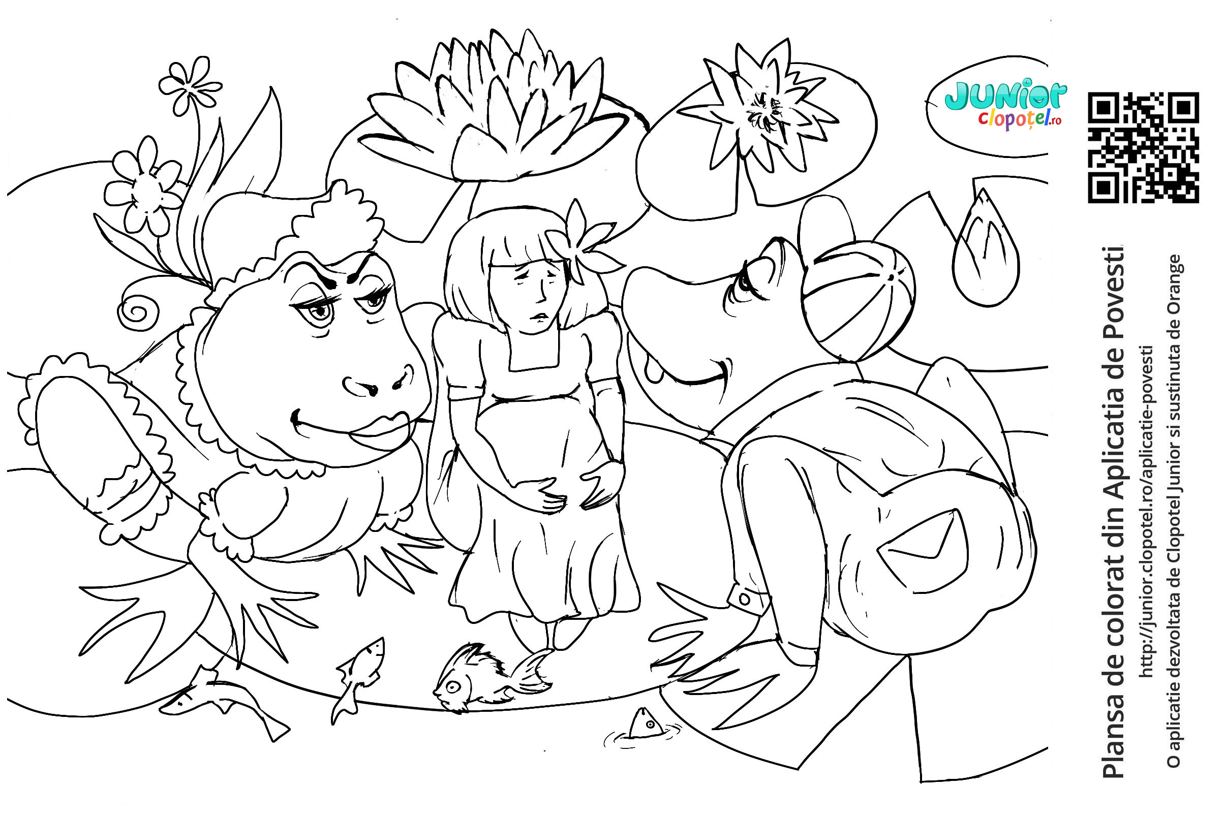 Descriere: Coloreaza plansa cu Degetica care era trista pentru ca trebuia sa se marite cu fiul broastei. Scena din aplicatia POVESTI. Daca vrei sa descoperi mai multe basme, descarca-ti aplicatia din Google Play sau App Store.