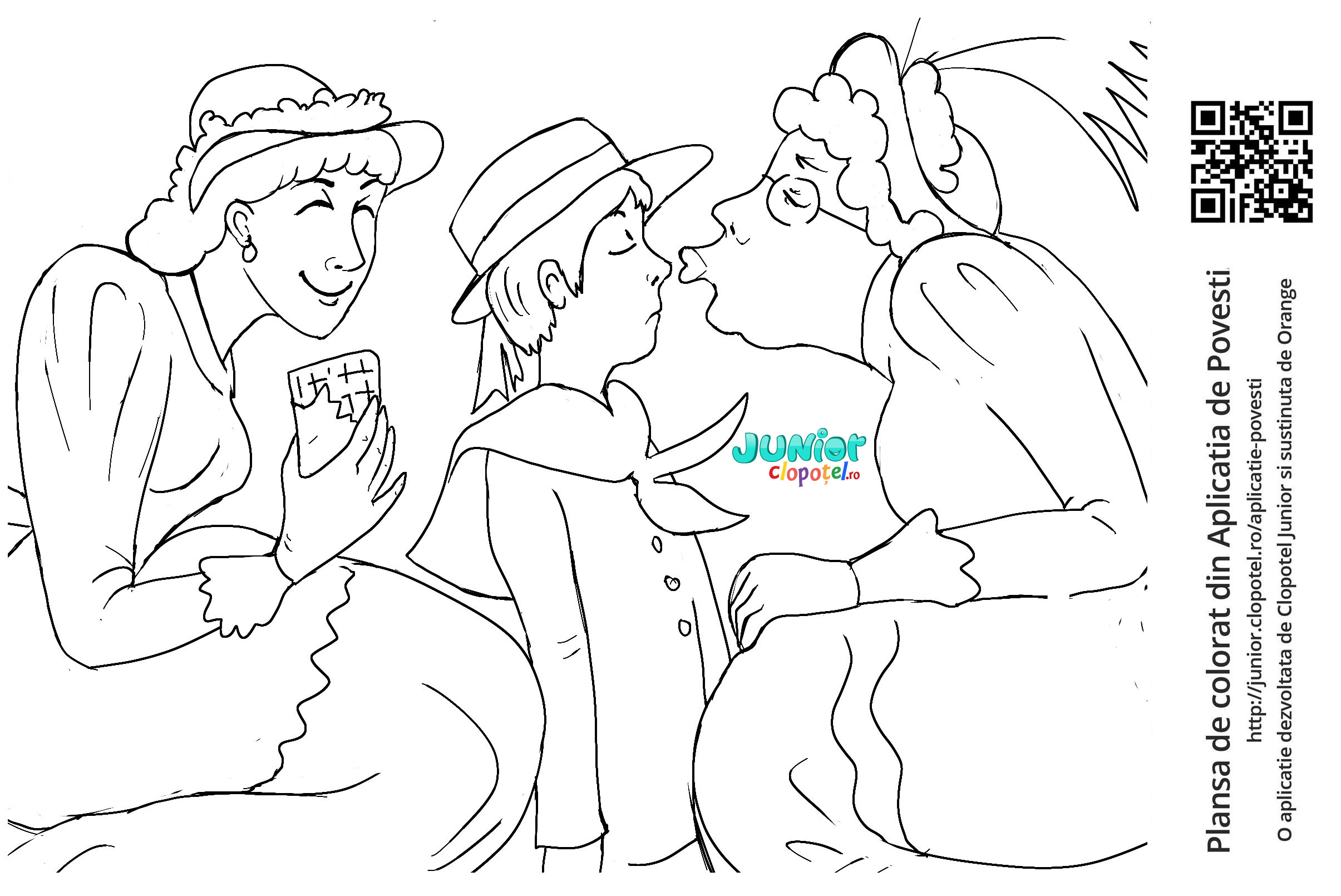 Descriere: Plansa de colorat cu Goe pupat in varful nasului de mam' mare. Scena din povestea "D-l Goe...". Citeste sau asculta povestea.