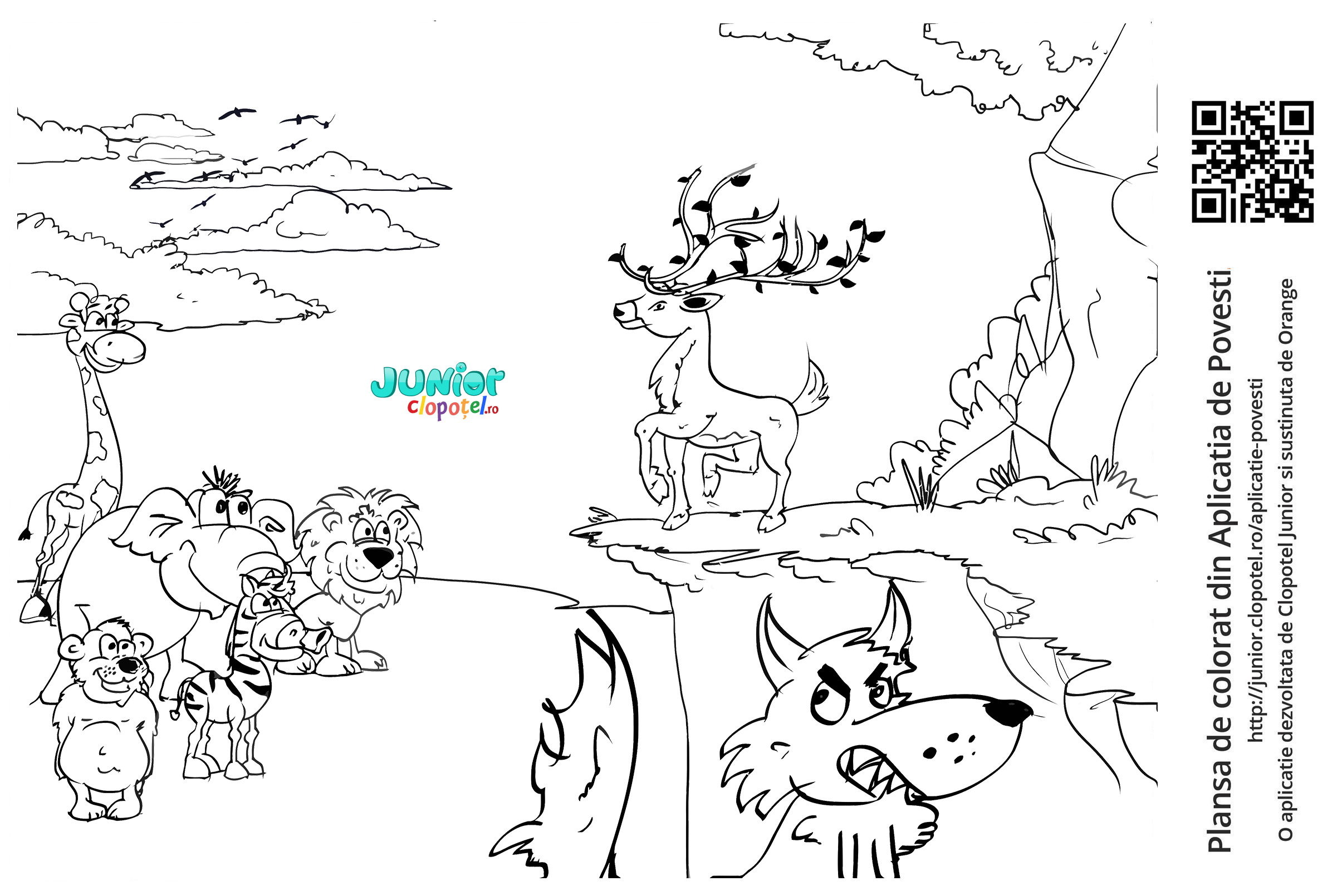 Descriere: Plansa de colorat cu noul voievod al brazilor. Scena din povestea "Legenda Cerbului" din aplicatia POVESTI. Daca vrei sa descoperi mai multe basme, descarca-ti aplicatia din Google Play sau App Store.