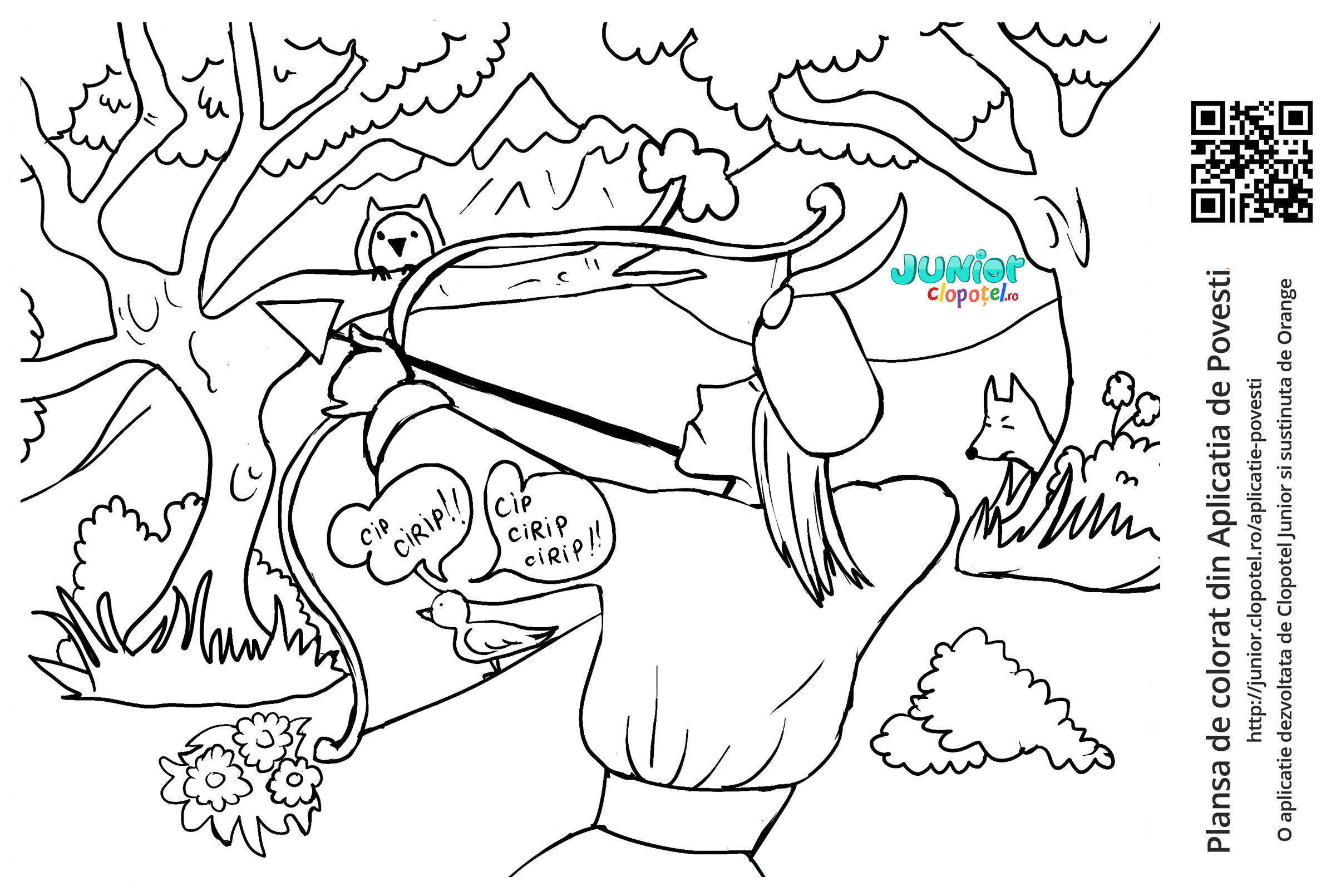 Descriere: Plansa de colorat cu feciorii imparatului care trag cu arcul. Scena din basmul "Zana zanelor" din aplicatia POVESTI. Daca vrei sa descoperi mai multe basme sau legende, descarca-ti aplicatia din Google Play sau App Store.