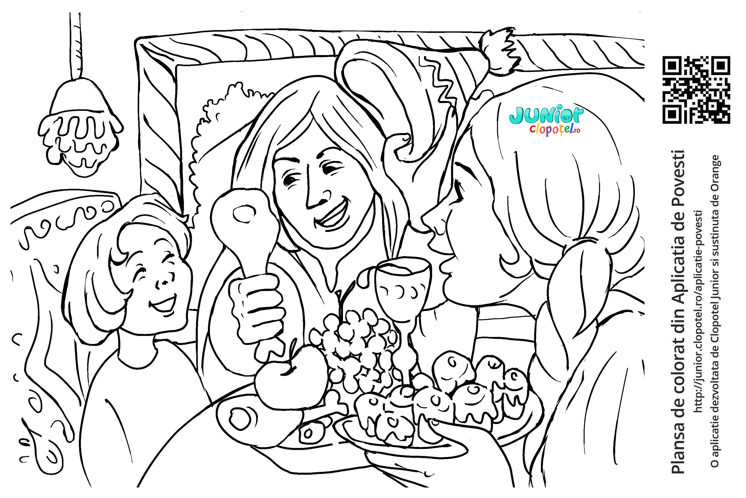 Descriere: Plansa de colorat cu feciorul de imparat si caciula fermecata ce il face nevazut. Scena din basmul "Zana zanelor" din aplicatia POVESTI. Daca vrei sa descoperi mai multe basme sau legende, descarca-ti aplicatia din Google Play sau App Store.