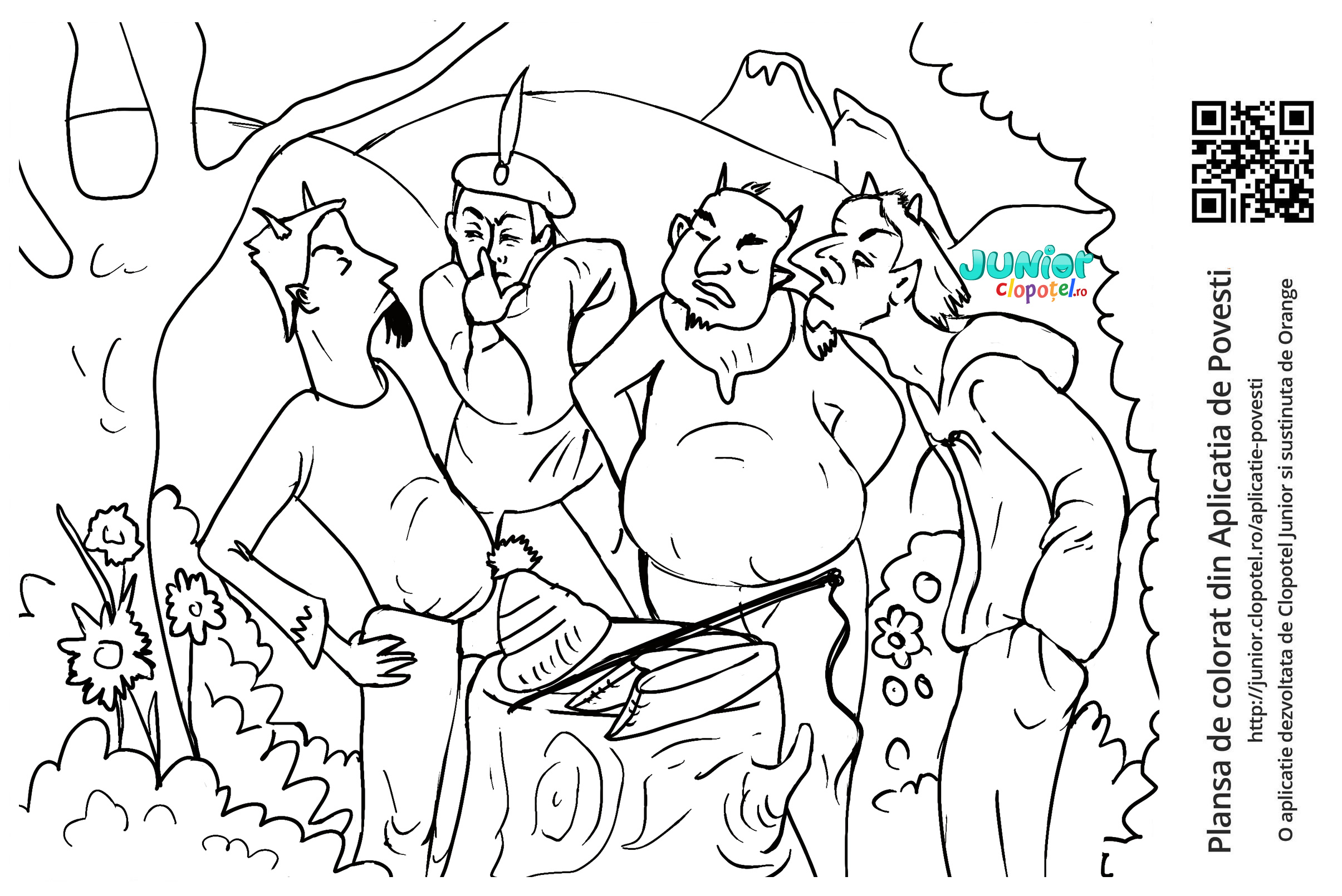 Descriere: Plansa de colorat cu feciorul imparatului si cei trei draci. Scena din basmul "Zana zanelor" din aplicatia POVESTI. Daca vrei sa descoperi mai multe basme sau legende, descarca-ti aplicatia din Google Play sau App Store.