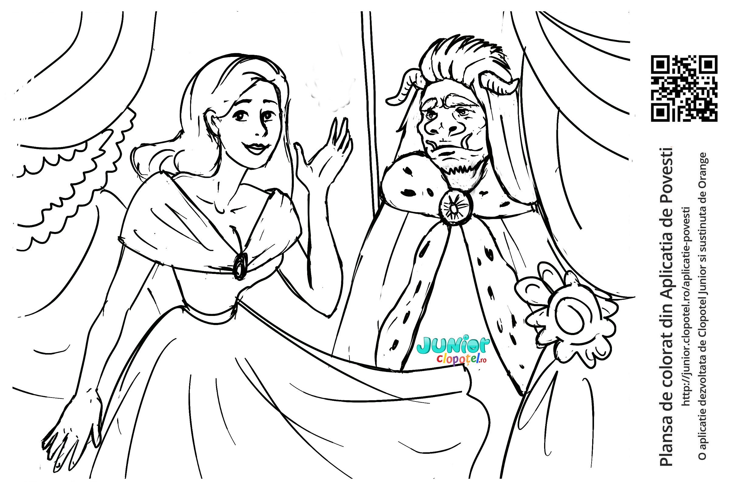 Descriere: Plansa de colorat cu Frumoasa si bestia.