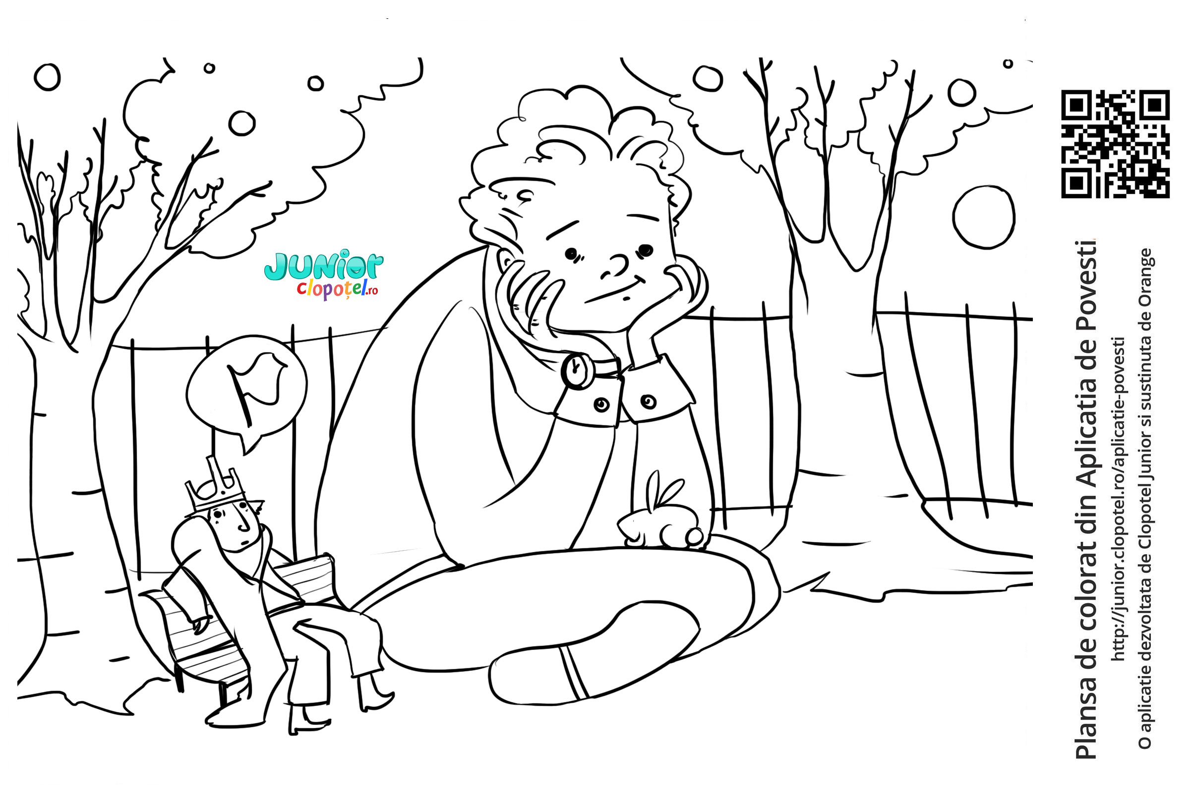 Descriere: Coloreaza plansa cu Imparatul Lilliputului care vorbeste cu Gulliver. Scena din povestea "Guliver - Calatorie in Lilliput" din aplicatia POVESTI. Daca vrei sa descoperi mai multe basme sau legende, descarca-ti aplicatia din Google Play sau App Store.