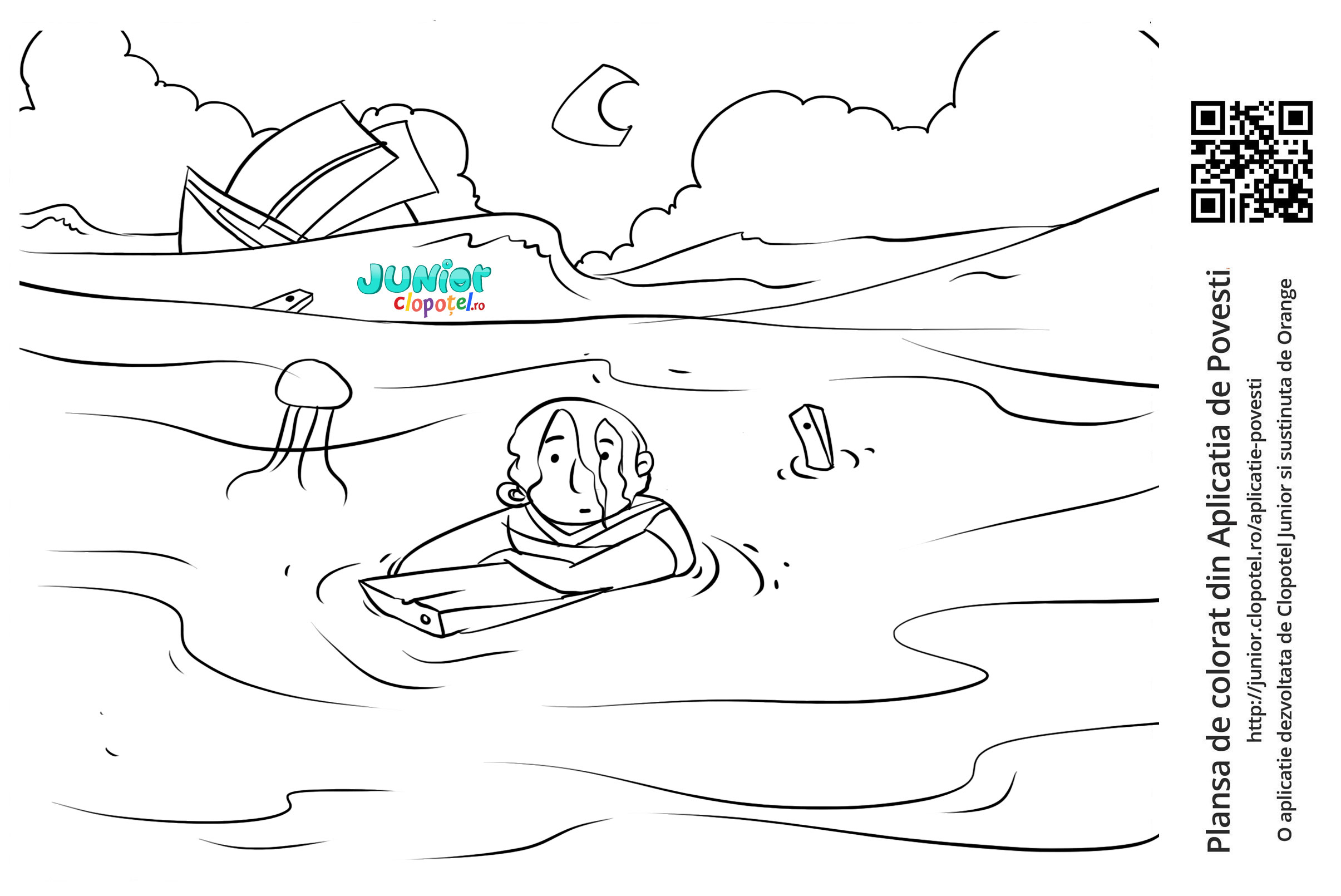 Descriere: Coloreaza-l pe Gulliver care pluteste tinandu-se de o scandura. Scena din povestea "Guliver - Calatorie in Lilliput" din aplicatia POVESTI. Daca vrei sa descoperi mai multe basme sau legende, descarca-ti aplicatia din Google Play sau App Store.