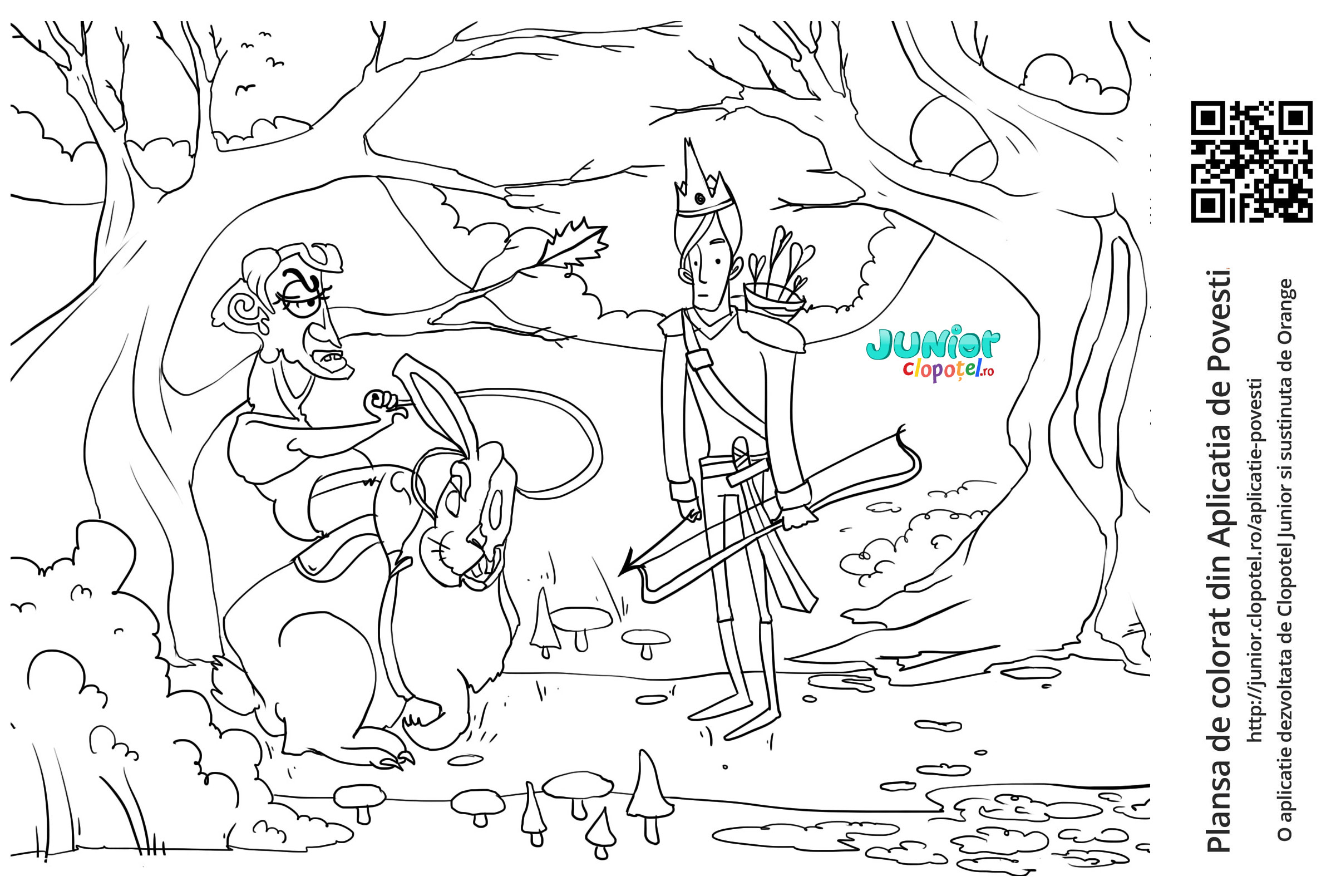 Descriere: Coloreaza plansa cu Aleodor imparat si Jumatate de om calare pe jumatate de iepure schiop. Scena din aplicatia POVESTI. Daca vrei sa descoperi mai multe basme sau legende, descarca-ti aplicatia din Google Play sau App Store.