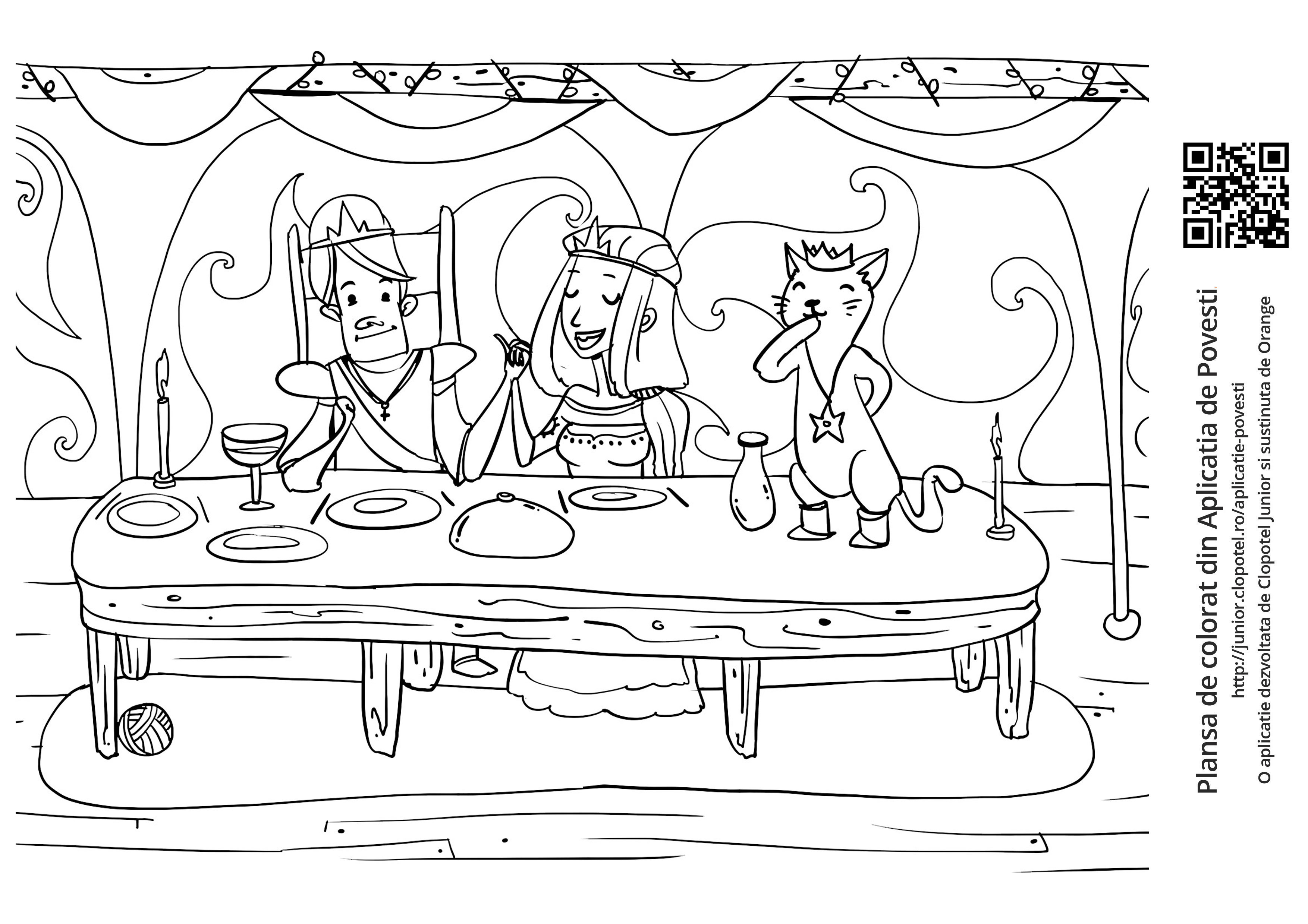 Descriere: Coloreaza plansa cu marchizul, printesa si motanul incaltat care a devenit motan regal. Scena din aplicatia POVESTI. Daca vrei sa descoperi mai multe basme sau legende, descarca-ti aplicatia din Google Play sau App Store.