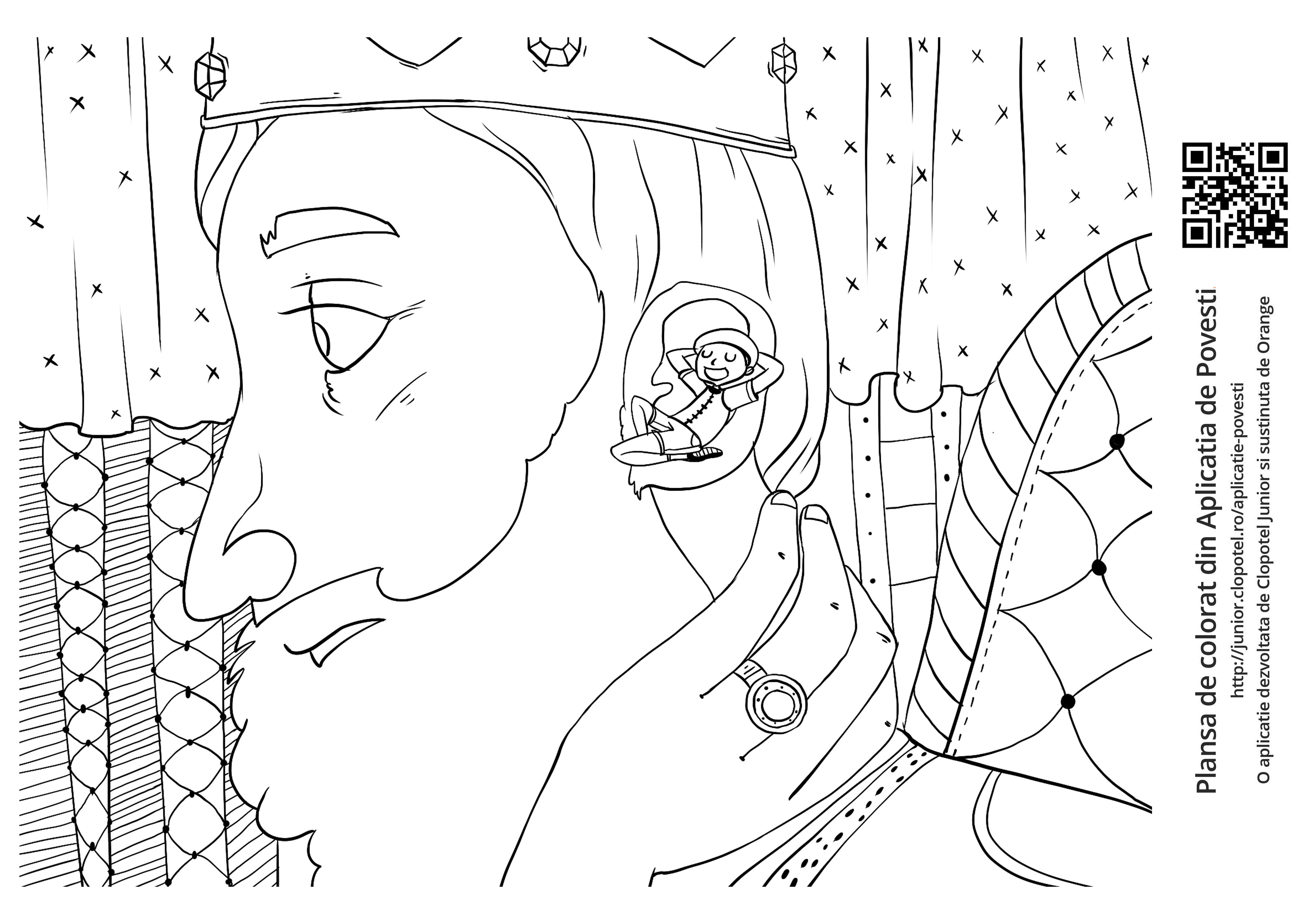 Descriere: Coloreaza plansa cu Neghinita care pusese stapanire pe gandurile imparatului. Scena din aplicatia POVESTI. Daca vrei sa descoperi mai multe basme sau legende, descarca-ti aplicatia din Google Play sau App Store.