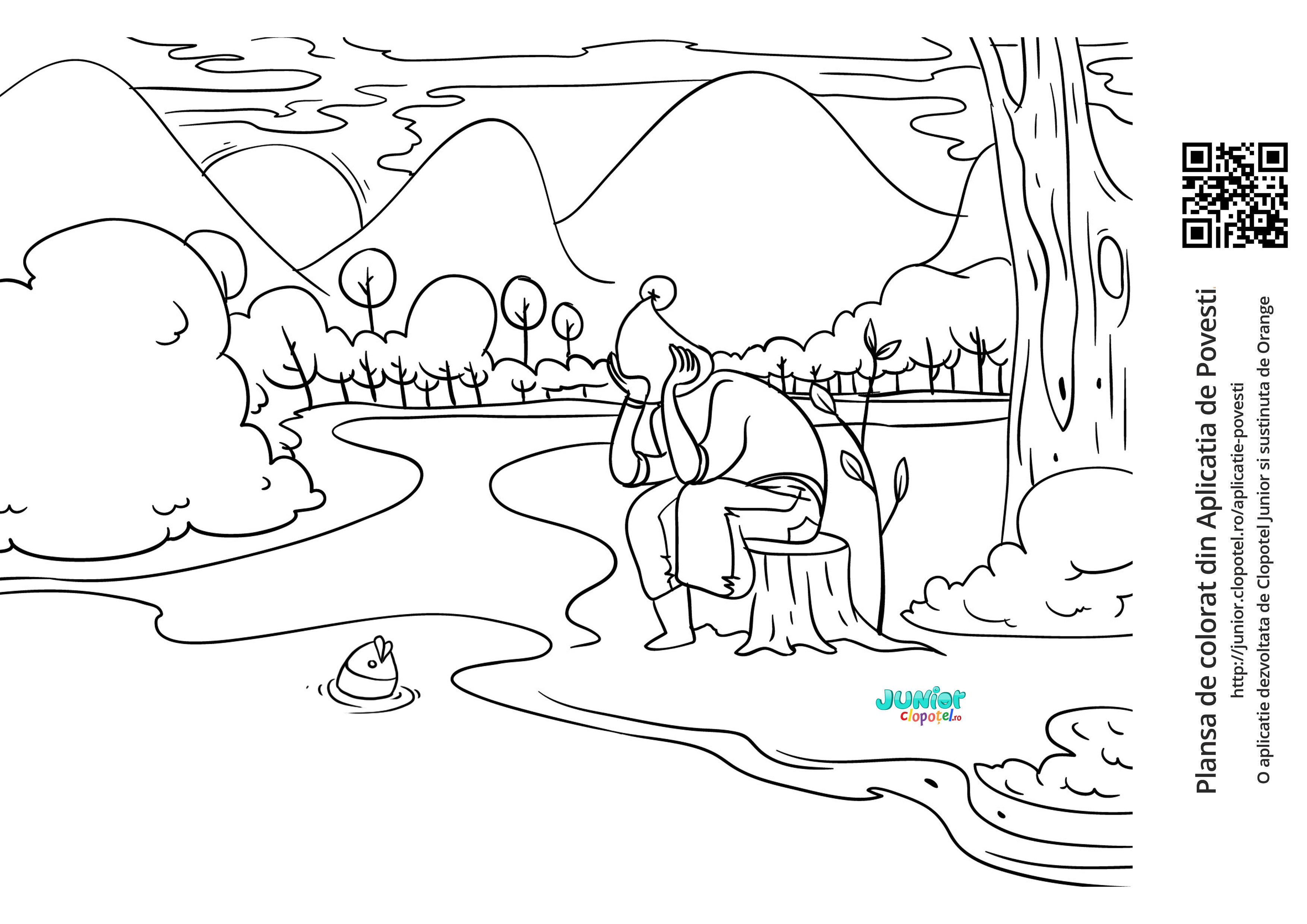 Descriere: Coloreaza plansa in care pescarul ii cere pestisorului sa ii indeplineasca o ultima dorinta. Scena din povestea "Pestisorul de aur". Citeste sau asculta povestea.