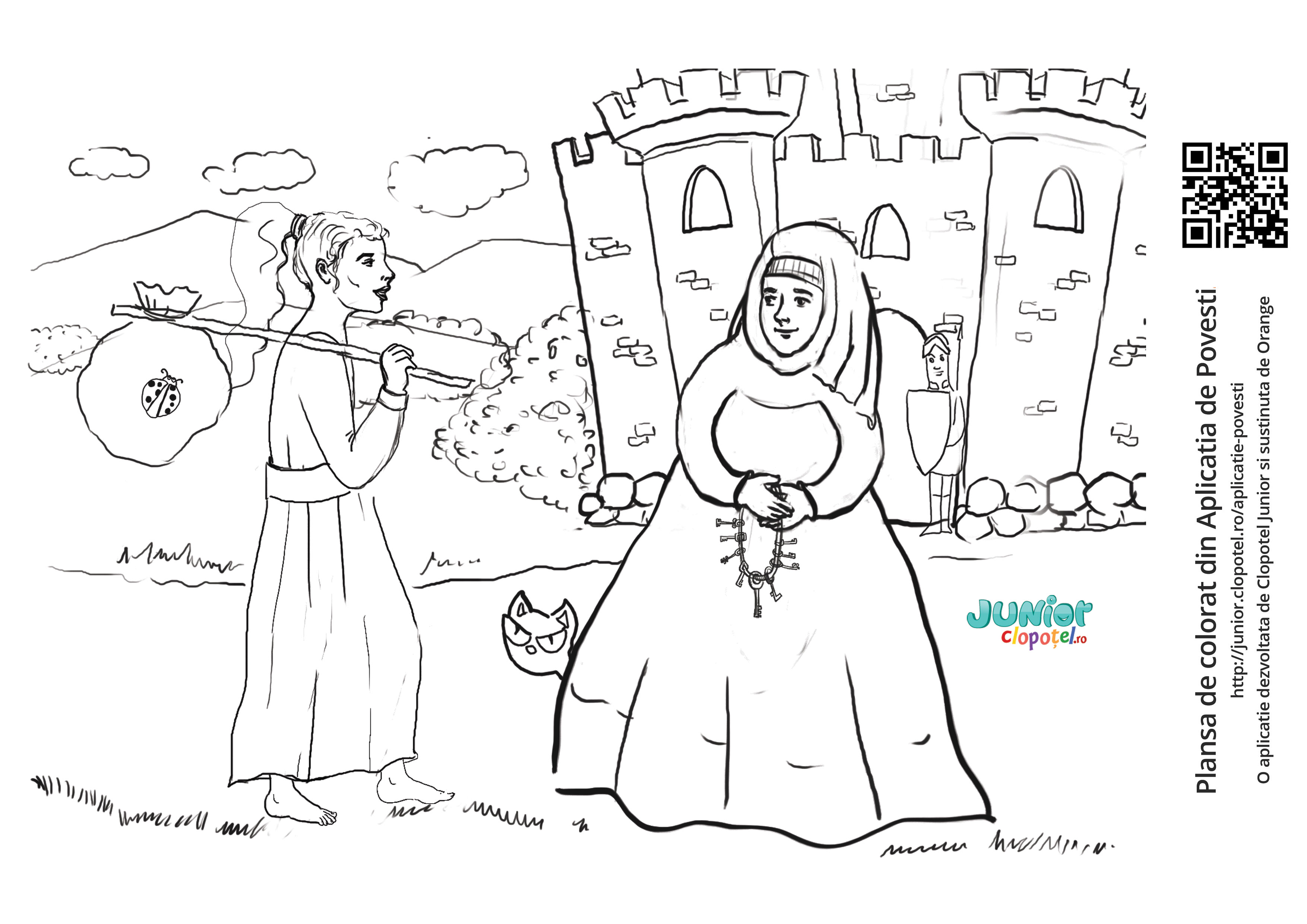 Descriere: Coloreaza plansa cu printesa izgonita de imparat care cere sa fie primita ca ajutor de chelareasa la palatul altui imparat. Scena din povestea "Sarea in bucate" din aplicatia POVESTI. Daca vrei sa descoperi mai multe basme sau legende, descarca-ti aplicatia din Google Play sau App Store.