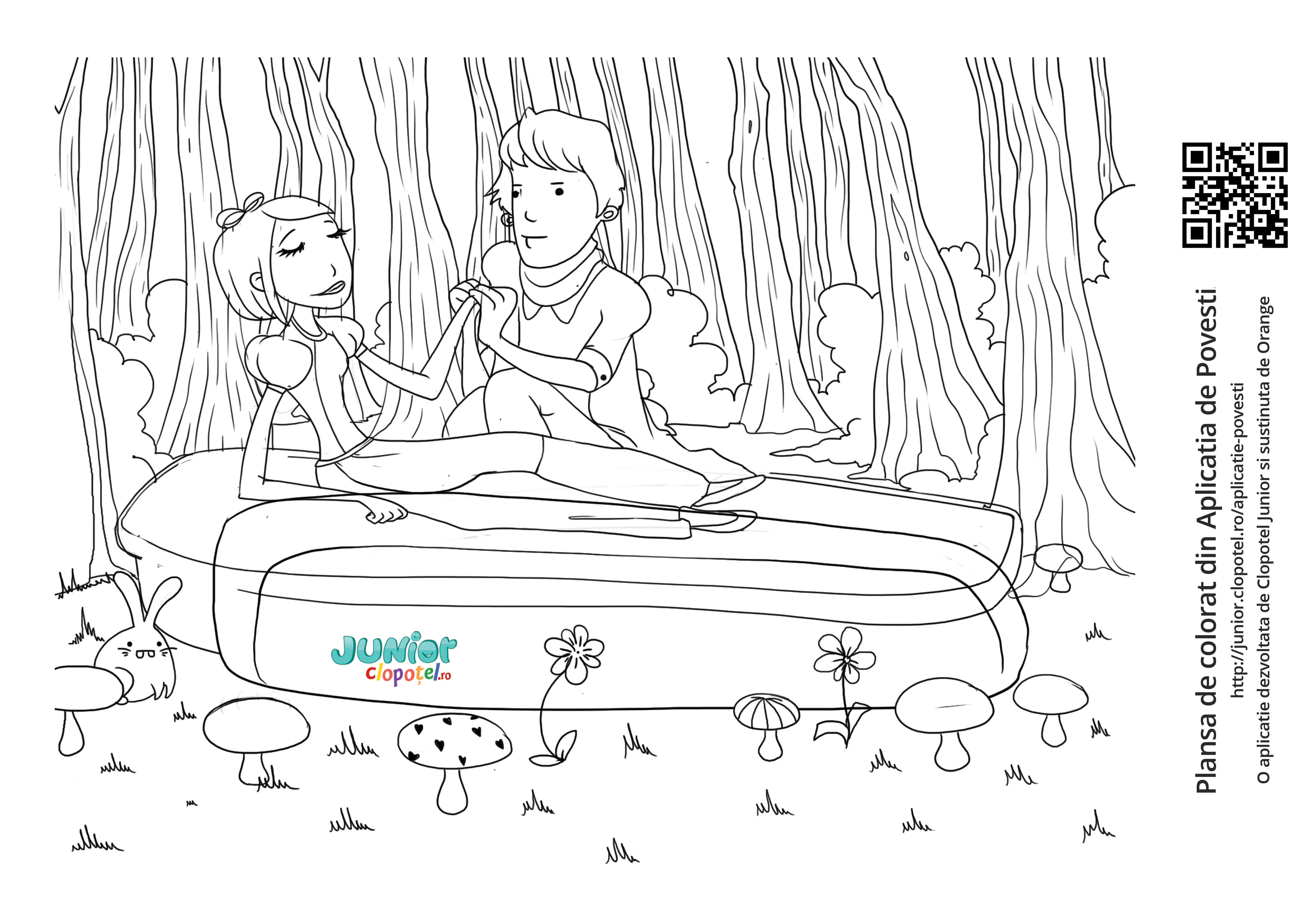 Descriere: Coloreaza plansa in care printul o face bine pe Alba ca Zapada. Scena din aplicatia POVESTI. Daca vrei sa descoperi mai multe basme sau legende, descarca-ti aplicatia din Google Play sau App Store.
