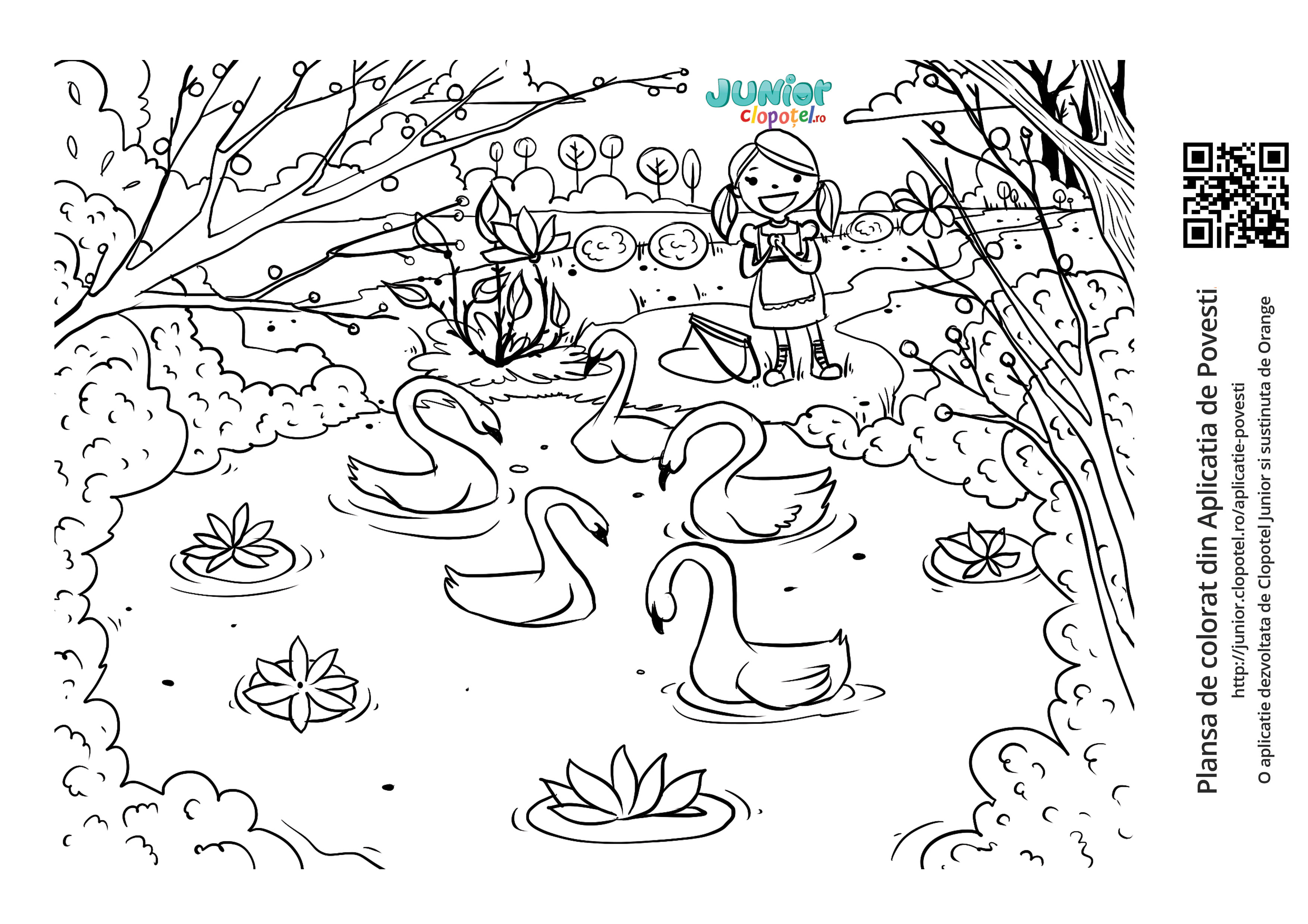 Descriere: Coloreaza lebedele din povestea "Ratusca cea urata". Scena din aplicatia POVESTI. Daca vrei sa descoperi mai multe basme sau legende, descarca-ti aplicatia din Google Play sau App Store.
