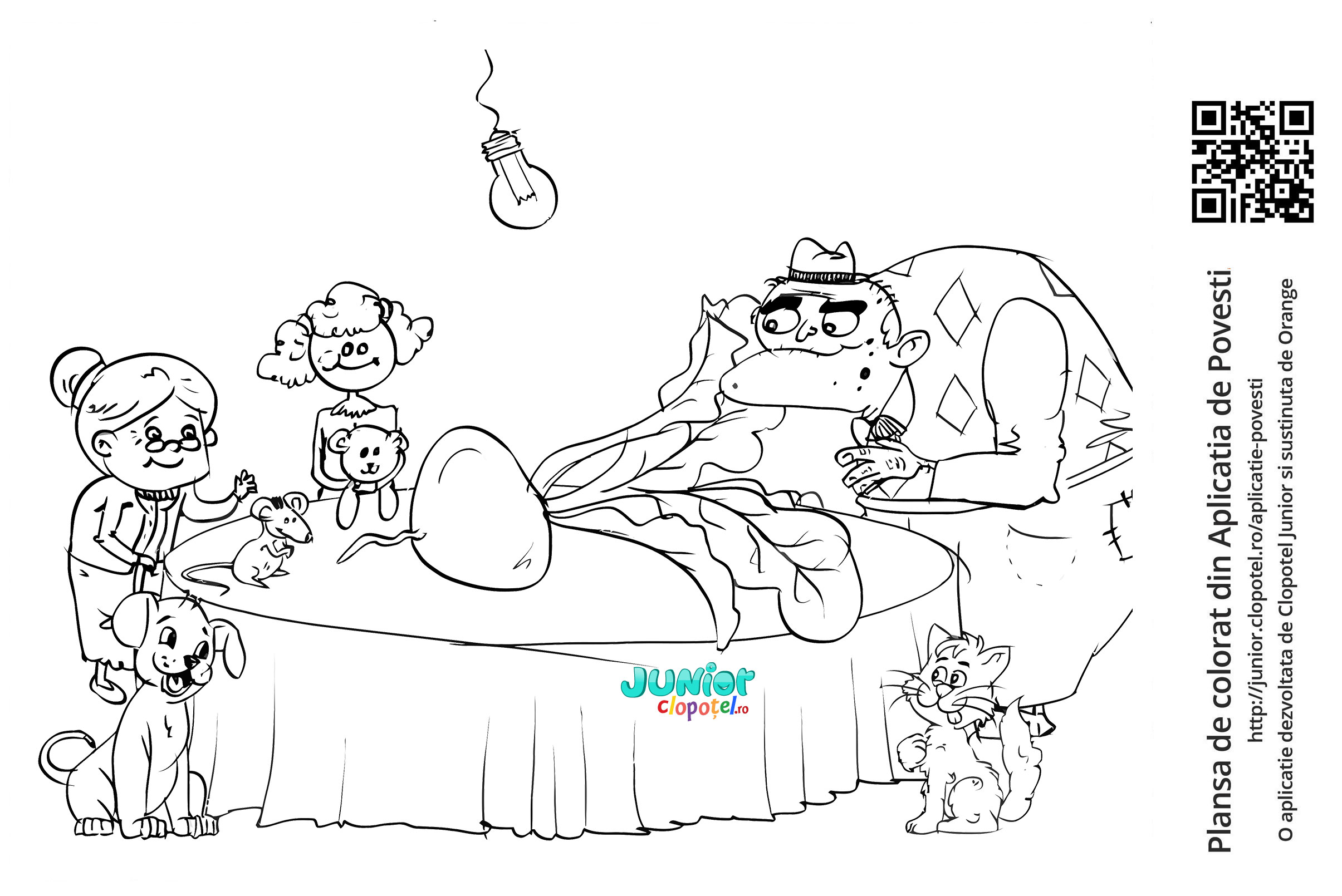 Descriere: Plansa de colorat cu ridichea uriasa. Scena din aplicatia POVESTI. Daca vrei sa descoperi mai multe basme sau legende, descarca-ti aplicatia din Google Play sau App Store.