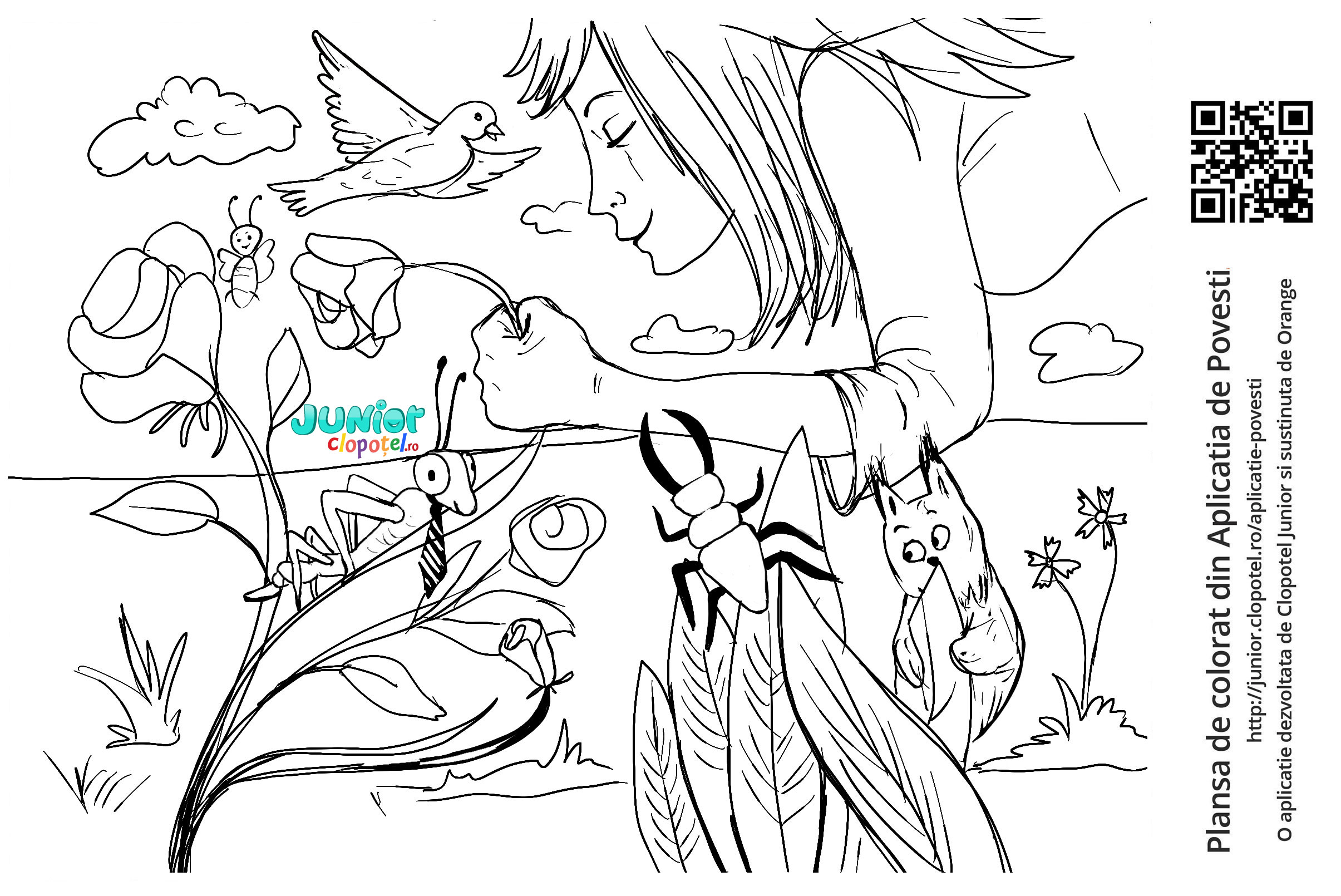 Descriere: Coloreaza trandafirul care este cules de drumeti. Scena din povestea Legenda Trandafirului si a Scaiului din aplicatia POVESTI. Daca vrei sa descoperi mai multe basme, descarca-ti aplicatia din Google Play sau App Store.