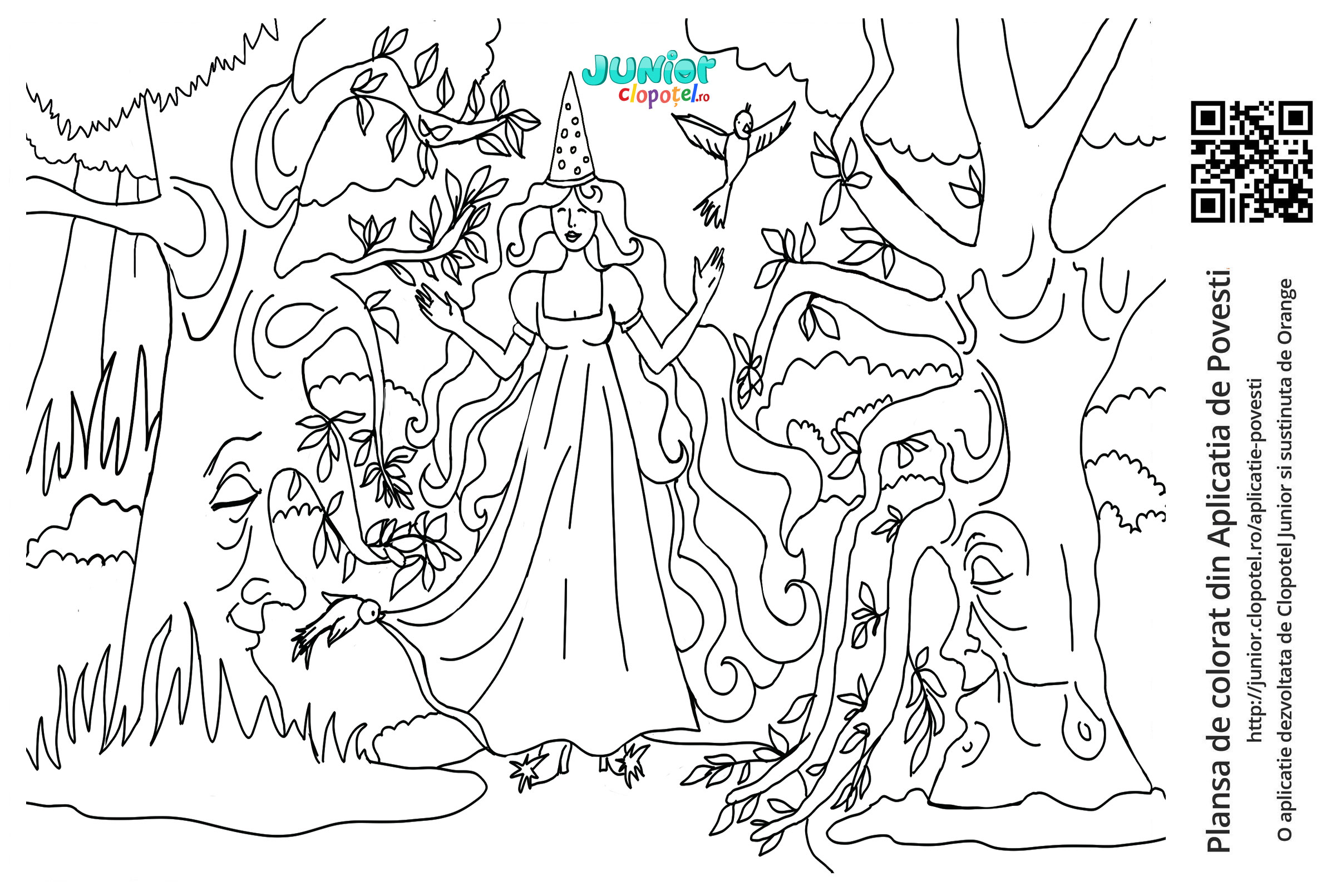 Descriere: Coloreaza plansa cu Zana Zorilor care i se arata Lebedei. Scena din povestea "Legenda lebedei" din aplicatia POVESTI. Daca vrei sa descoperi mai multe basme sau legende, descarca-ti aplicatia din Google Play sau App Store.