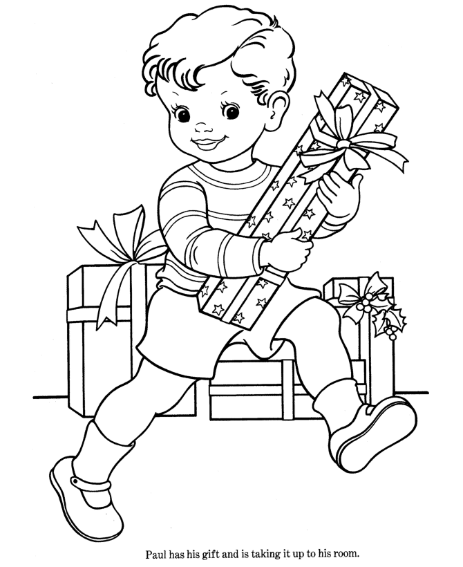 Descriere: Plansa de colorat de Craciun cu un baietel fericit.