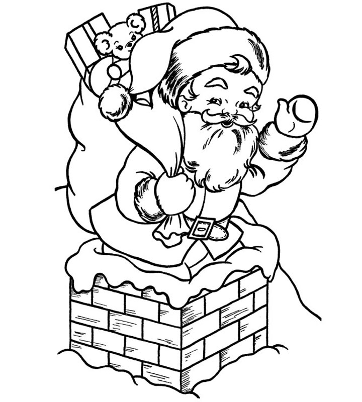 Descriere: Coloreaza-l pe Mos Craciun pe cosul de la casa.
