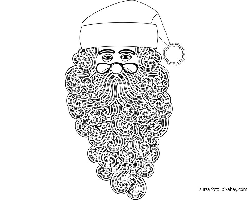 Descriere: Plansa de colorat cu chipul lui Mos Craciun.