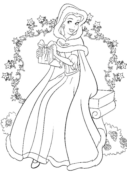 Descriere: Printesa Belle te invita sa colorezi plansa cu darul primit de la Mos Craciun.