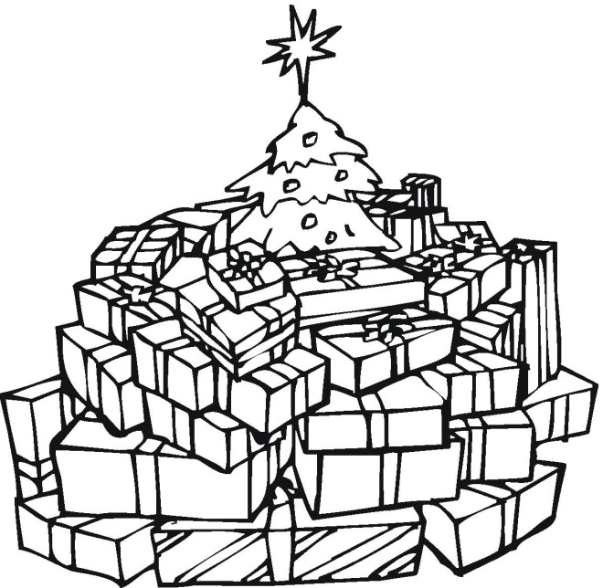 Descriere: Coloreaza bradul si cadourile din plansa de Craciun.