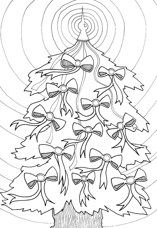 Descriere: Plansa de colorat cu un bradut de Craciun cu fundite.