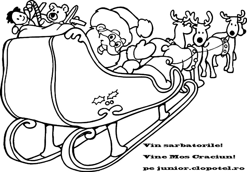 Descriere: Plansa de colorat cu Mos Craciun care ne anunta ca ne aduce cadouri daca am fost cuminti.