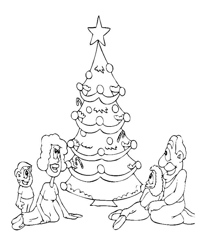 Descriere: Plansa de colorat cu o familie care admira bradul de Craciun.