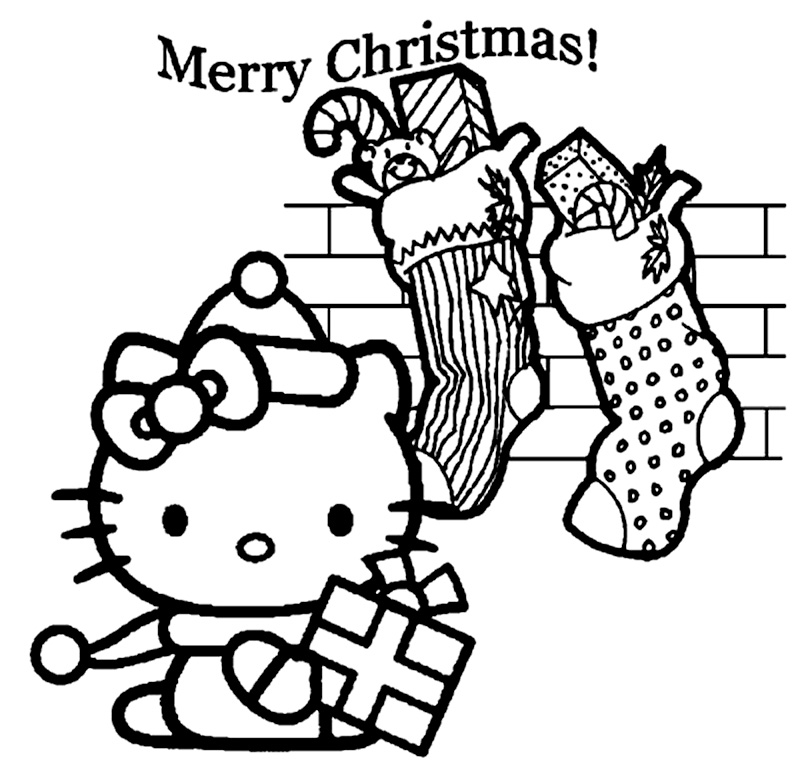 Descriere: Coloreaza plansa cu Hello Kitty la ciorapii cu cadouri de Craciun.