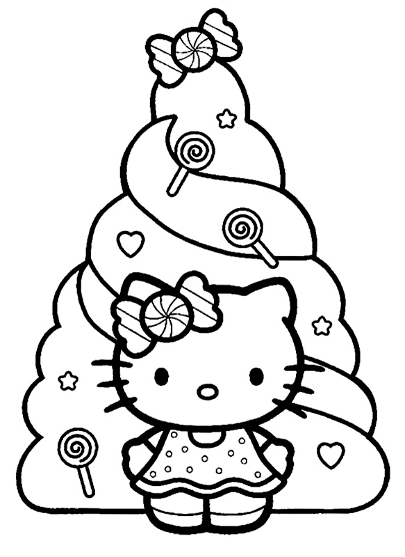 Descriere: Coloreaza plansa cu Hello Kitty la bradul de Craciun.