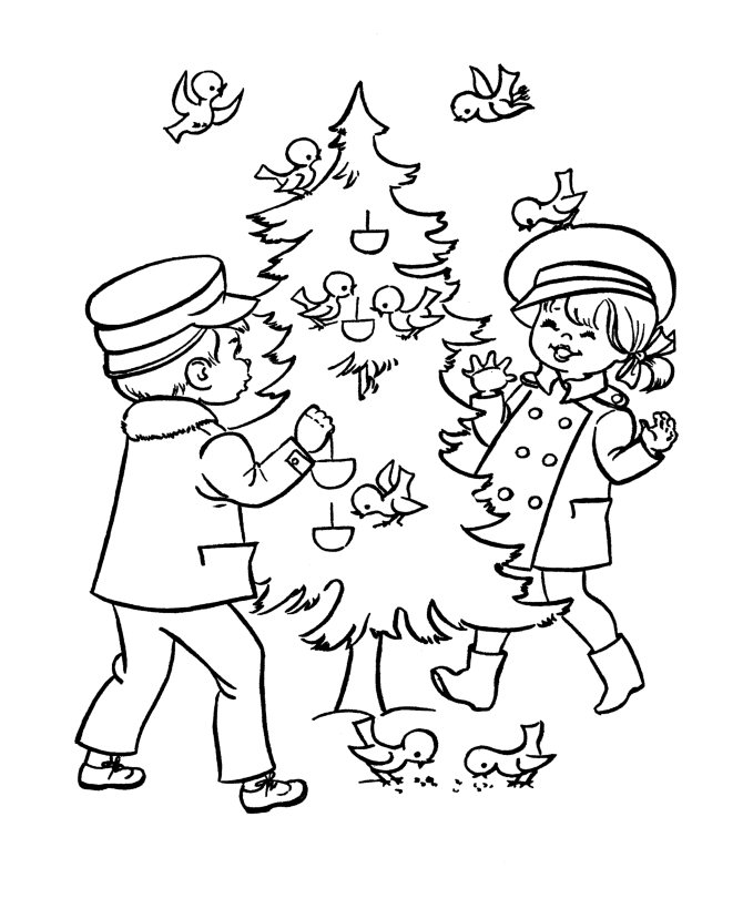 Descriere: Plansa de colorat de Craciun cu doi copii impodobind bradul.