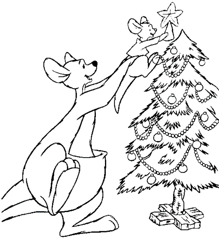 Descriere: Coloreaza plansa cu Kanga si Roo din desenele animate cu Wiinie de Plus care decoreaza bradutul de Craciun.
