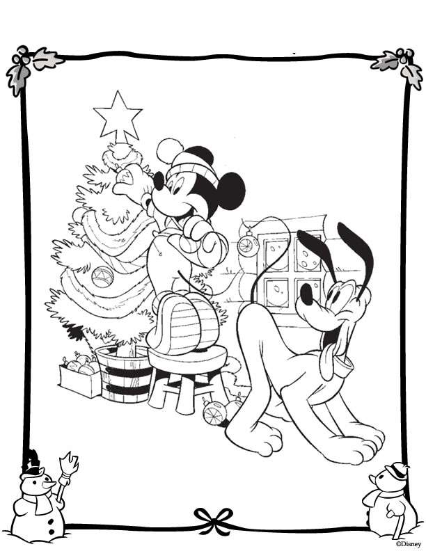 Descriere: Plansa de colorat de Craciun cu desenele animate Mickey Mouse.