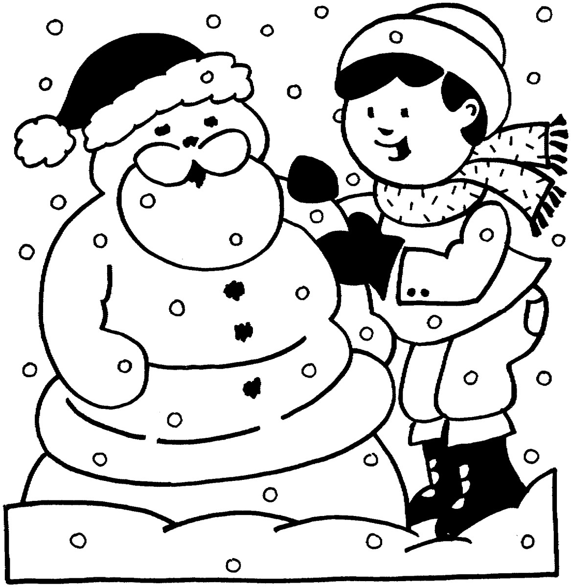 Descriere: Plansa de colorat cu Mos Craciun facut din zapada.