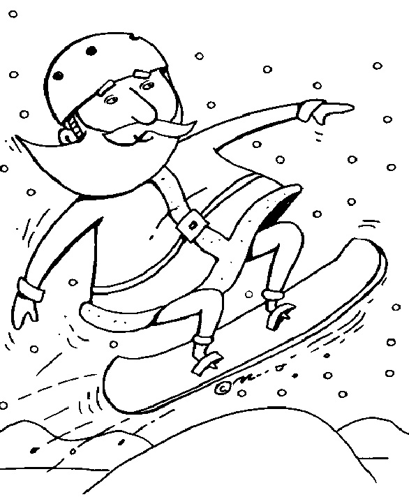 Descriere: Coloreaza plansa cu Mos Craciun care se da pe derdelus cu placa.