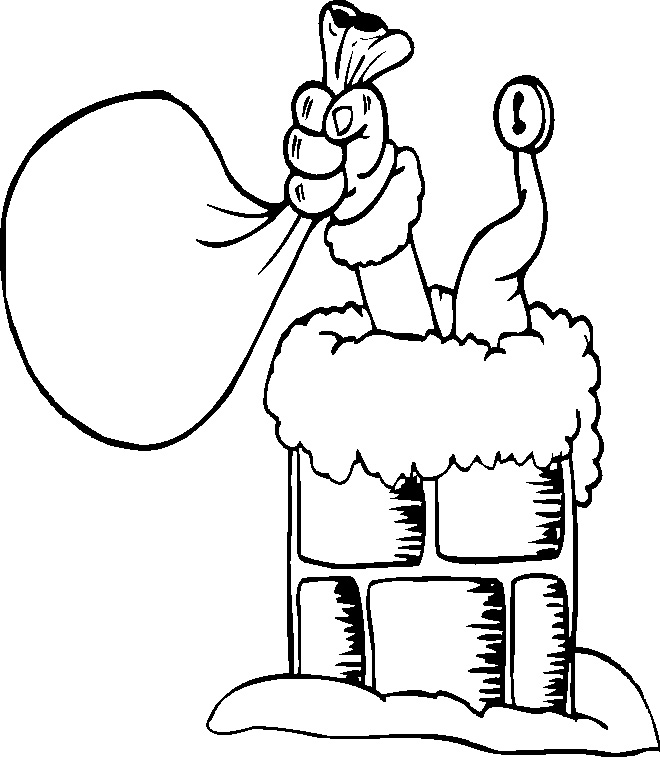 Descriere: Coloreaza plansa cu sacul lui Mos Craciun care este gata sa intre in horn.