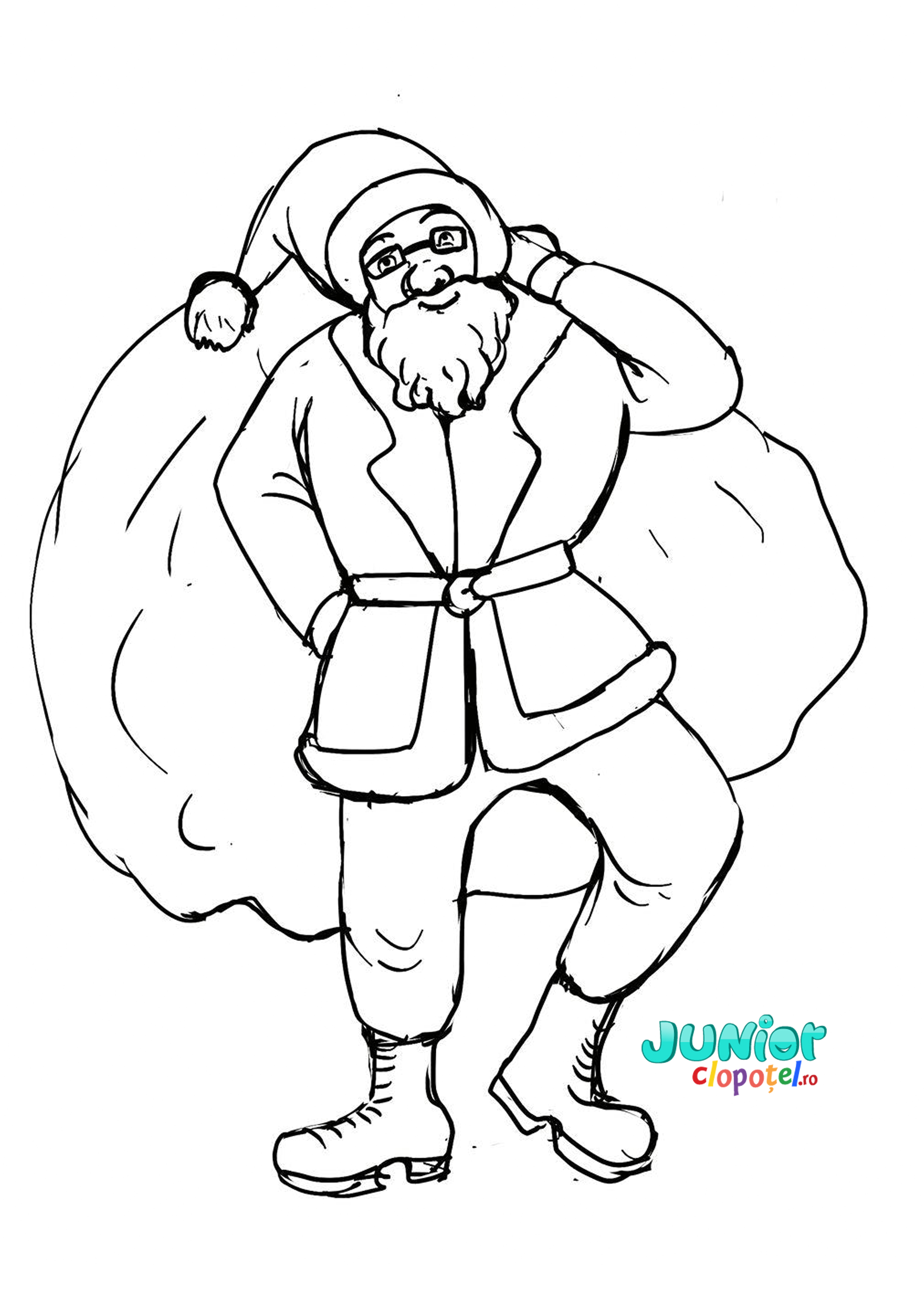 Descriere: Plansa de colorat cu un mos Craciun cu ochelari.