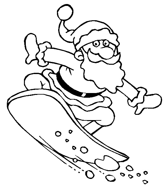 Descriere: Plansa de colorat cu Mos Craciun pe placa de snowboard.