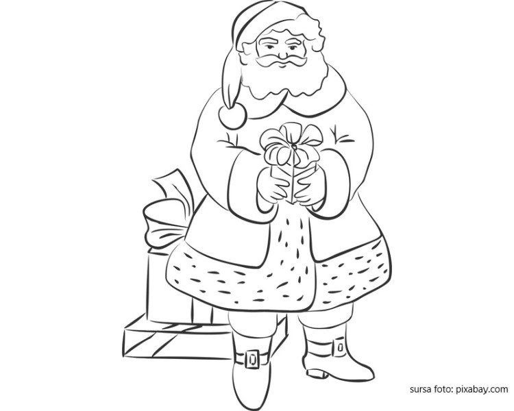 Descriere: Plansa de colorat cu Mos Craciun si cadoul.