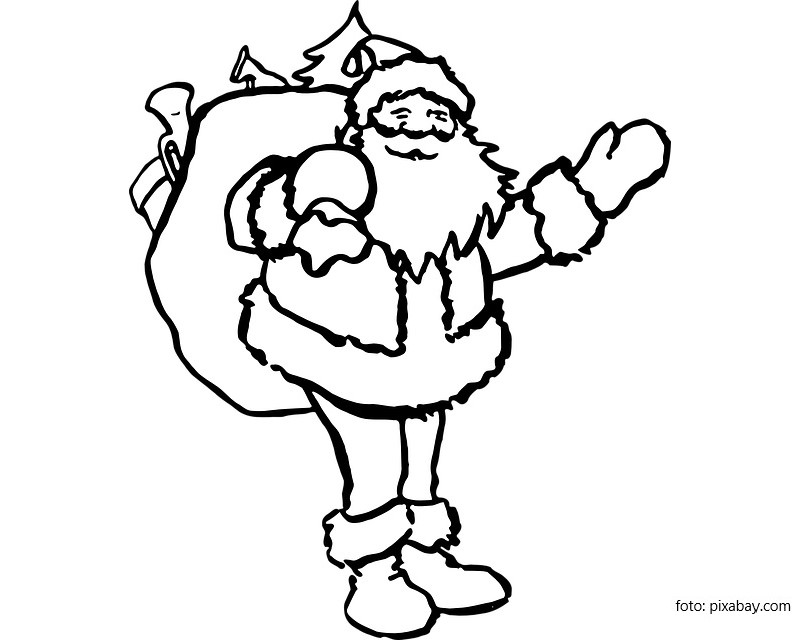 Descriere: Plansa de colorat cu Mos Craciun si sacul cu daruri.