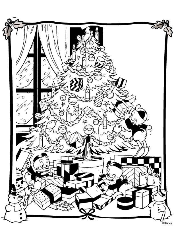 Descriere: Plansa de colorat de Craciun cu nepotii lui Donald Duck.
