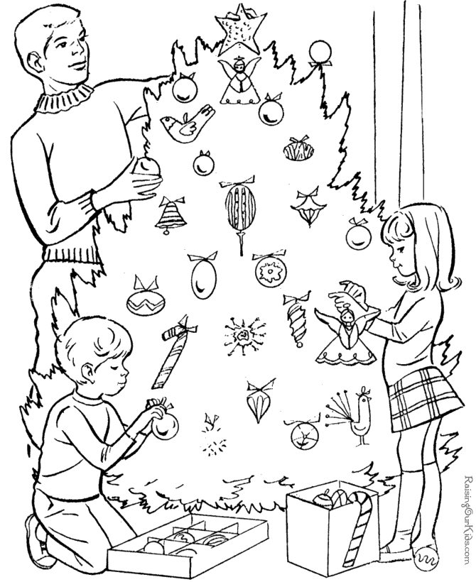 Descriere: Plansa de colorat cu bradul de Craciun impodobit in familie.
