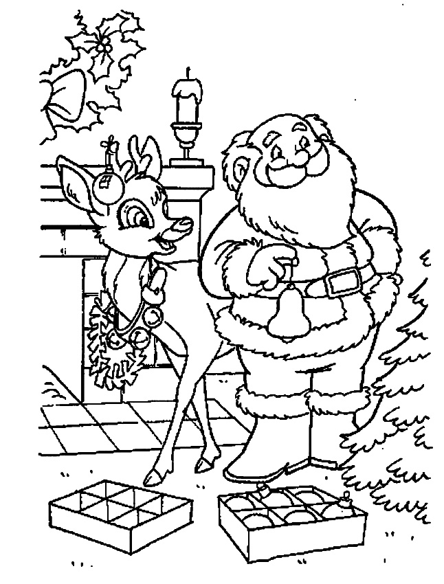 Descriere: Aseaza culorile in aceasta minuntata plansa cu Mos Craciun care impodobeste bradul alaturi de Rudolf, renul preferat al mosului.
