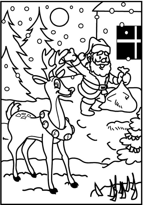 Descriere: Plansa de colorat de Craciun cu Rudolf si Mos Craciun.