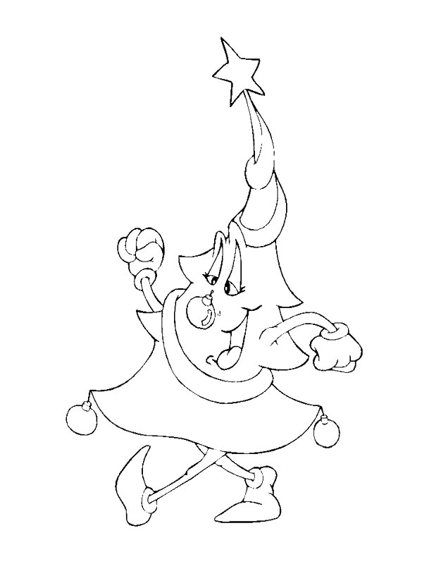 Descriere: Plansa de colorat cu un brad de Craciun vesel.