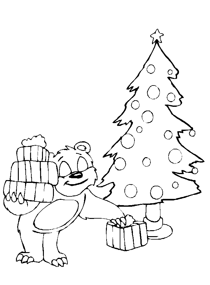 Descriere: De Craciun coloreaza plansa de colorat cu ursuletul darnic.